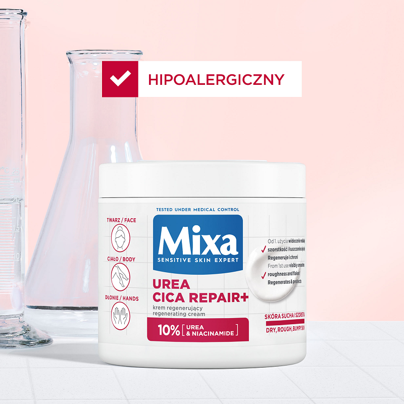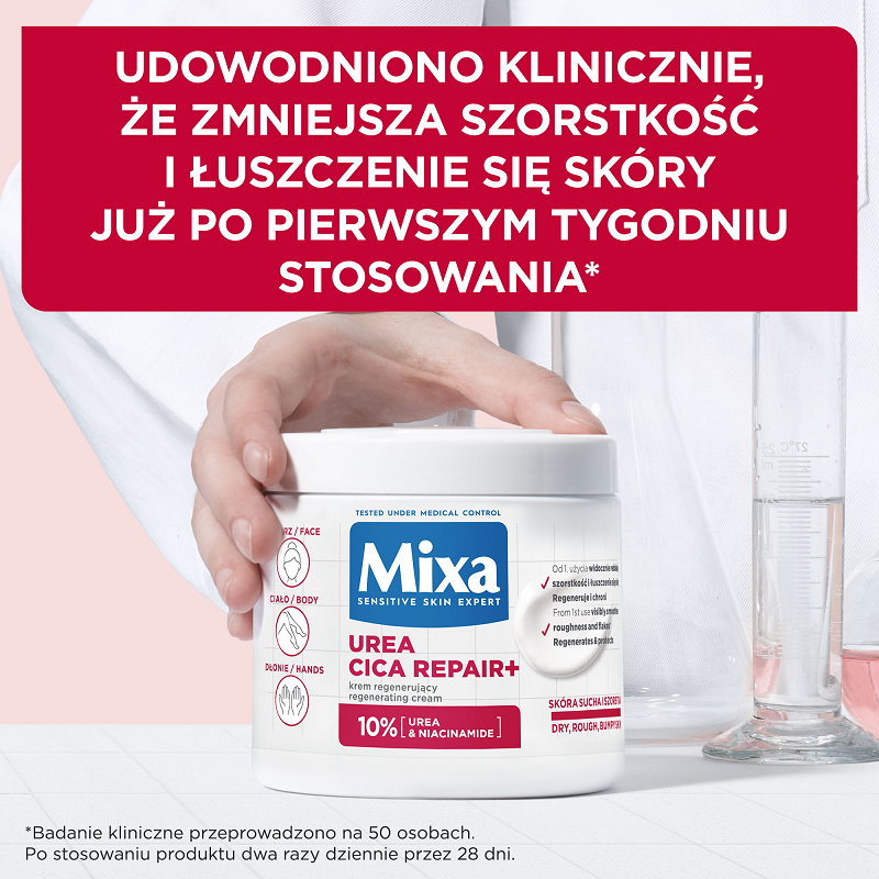 W składzie Mixa Urea Cica Repair+ na efekt wpływają aż 2 składniki: