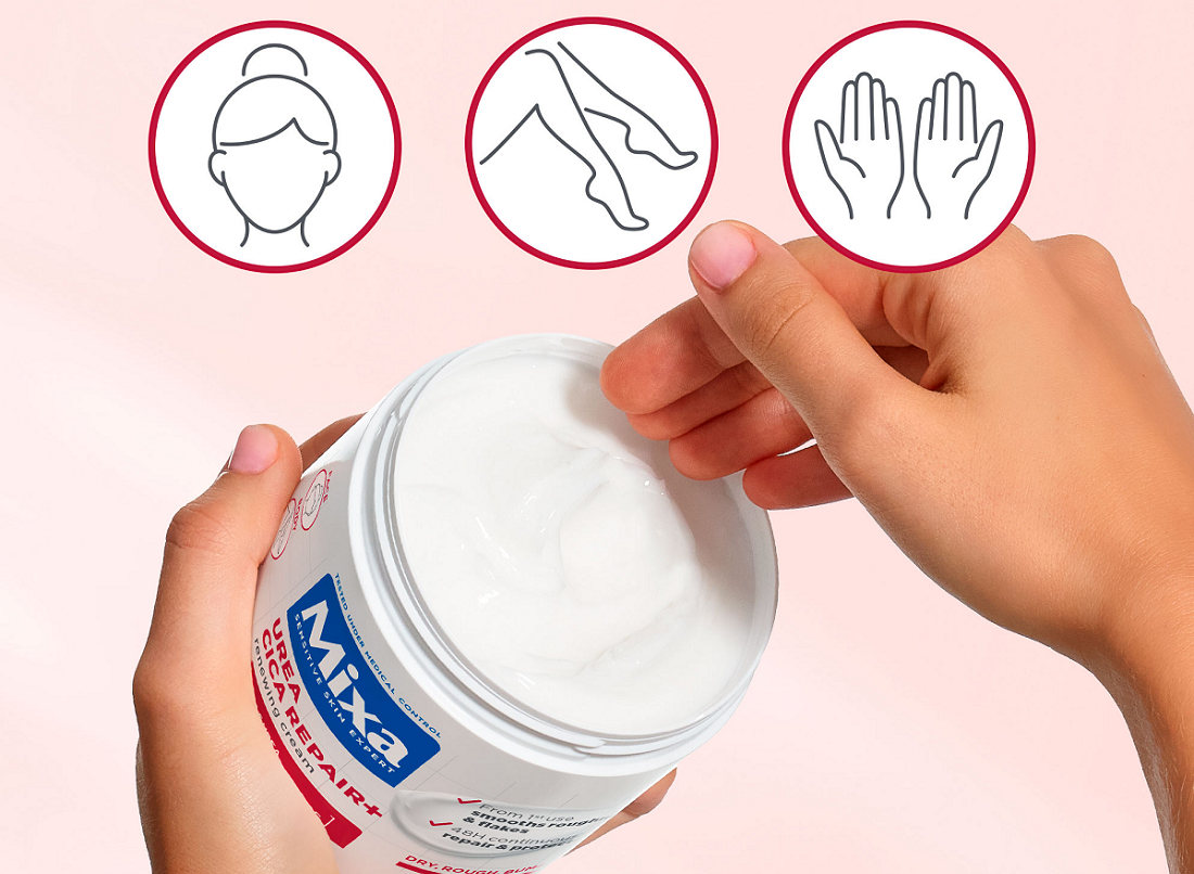 W mediach społecznościowych widoczne jest rosnące zainteresowanie pielęgnacją ciała. Pomimo że potrzeby skóry na całym ciele są podobne, to jednak twarz zdecydowanie wygrywa z całą resztą. Odpowiedzią na kompleksową pielęgnację jednocześnie twarzy, ciała i dłoni są multifunkcyjne kremy Mixa. Wśród nich nie brakuje regeneracyjnej formuły z mocznikiem i niacynamidem. Ta sprawdzi się przez okrągły rok, ale jej wartość dodatkowo rośnie w kontekście pielęgnacji jesienią i zimą, kiedy skóra jest narażona na kontakt z suchym powietrzem w ogrzewanych pomieszczeniach. Regularne używanie multifunkcyjnego kremu Mixa pozwoli zregenerować suchą skórę, uwolni ją od szorstkości i łuszczenia się, a także wzmocni jej barierę ochronną.