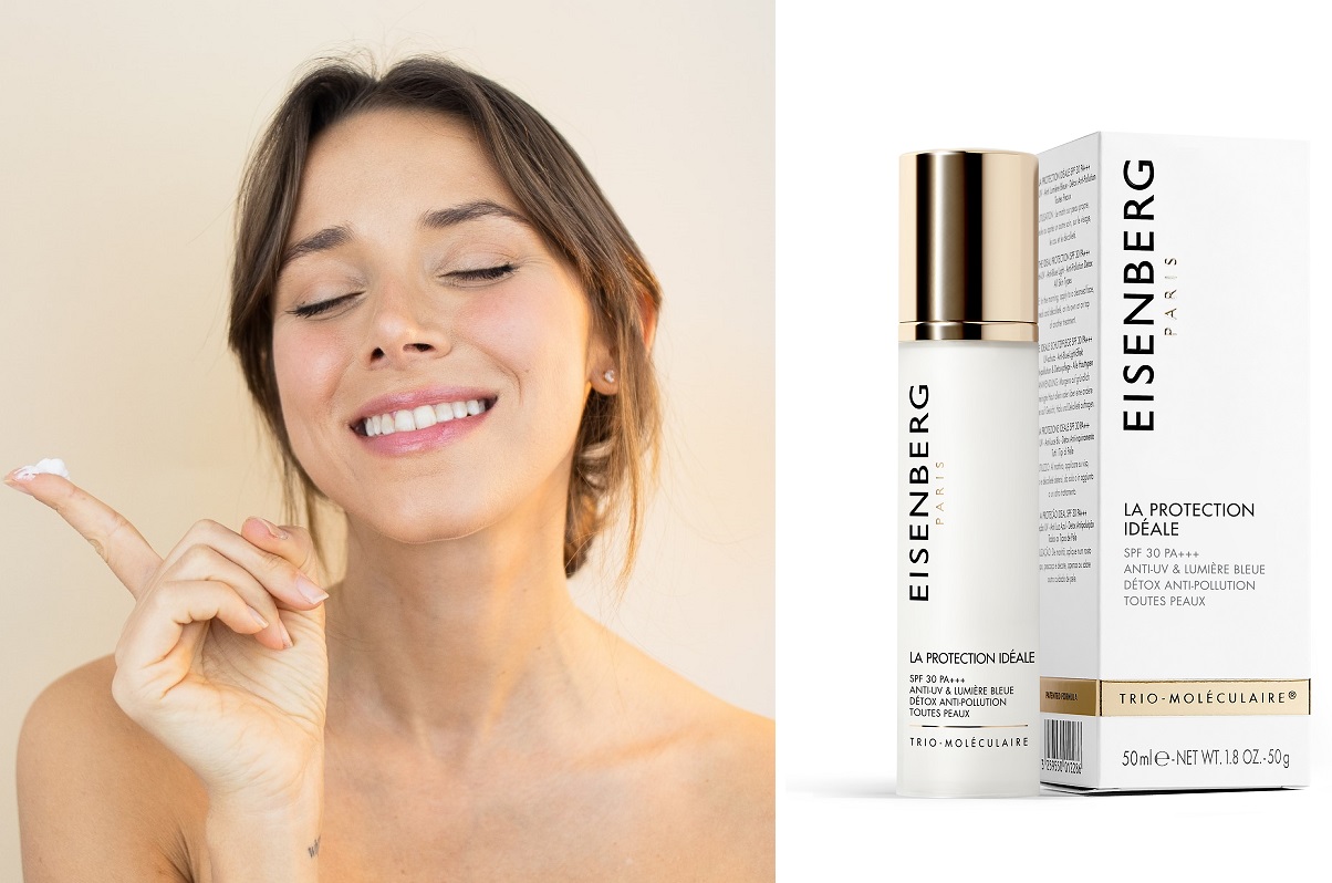 EISENBERG Paris IDEAL PROTECTION działa jak niewidoczna tarcza, która skutecznie chroni skórę przed szkodliwym promieniowaniem UV i HEV (niebieskie światło) oraz działaniem wolnych rodników. Synergia ochronnych składników oraz formuła Trio-Molecular® sprawia, że ten kosmetyk działa jak najlepsza terapia anti-ageing, jaką możemy zafundować skórze. Krem ma w składzie także wzmacniające ceramidy roślinne, nawilżający wyciąg z aloesu oraz masło shea, wpływające na jej lepszą regenerację.