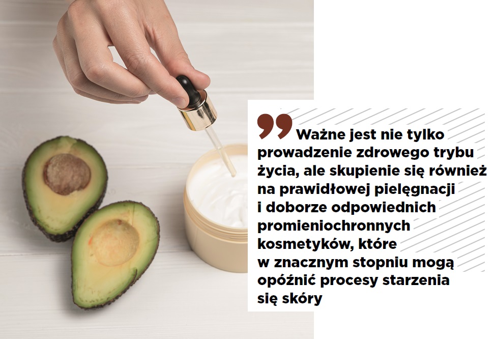 W związku z tym, że to skóra najbardziej narażona jest na czynniki zewnętrzne, dlatego procesy jej starzenia przebiegają szybciej i są też bardziej widoczne. Promieniowanie UV przyspiesza wystąpienie pierwszych objawów starzenia się skóry, a także je nasila. Dlatego tak ważne jest nie tylko prowadzenie zdrowego trybu życia, ale skupienie się również na prawidłowej pielęgnacji i doborze odpowiednich promieniochronnych kosmetyków, które w znacznym stopniu mogą opóźnić procesy starzenia się skóry. Niestety z wiekiem słabną mechanizmy obronne organizmu do neutralizowania ogromnej ilości wolnych rodników, które uwalniają się pod wpływem dymu nikotynowego, zanieczyszczenia środowiska i przede wszystkim- pod wpływem promieniowania UV.