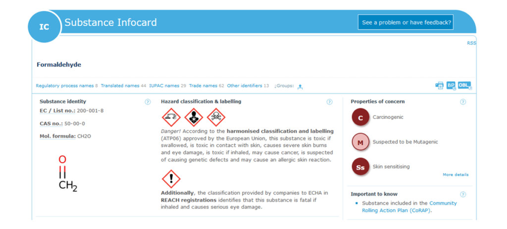 Stosowanie wolnego formaldehydu w kosmetykach zostało zakazane od maja 2019 roku. Substancja ta (nr CAS 50-00-0, nr WE 200-001-8) została sklasyfikowana jako rakotwórcza (kategoria 1B) i działająca uczulająco na skórę (kategoria 1) w części 3 załącznika VI do rozporządzenia (WE) nr 1272/2008 ( ). Zgodnie z art. 15 rozporządzenia (WE) nr 1223/2009 stosowanie w produktach kosmetycznych substancji sklasyfikowanych w tym załączniku jako substancje rakotwórcze kategorii 1B jest zakazane. W związku z powyższym, stosowanie wolnego formaldehydu w produktach kosmetycznych zostało zakazane, a związek ten jest obecnie wymieniony w pozycji 1577 załącznika II do rozporządzenia (WE) nr 1223/2009.
