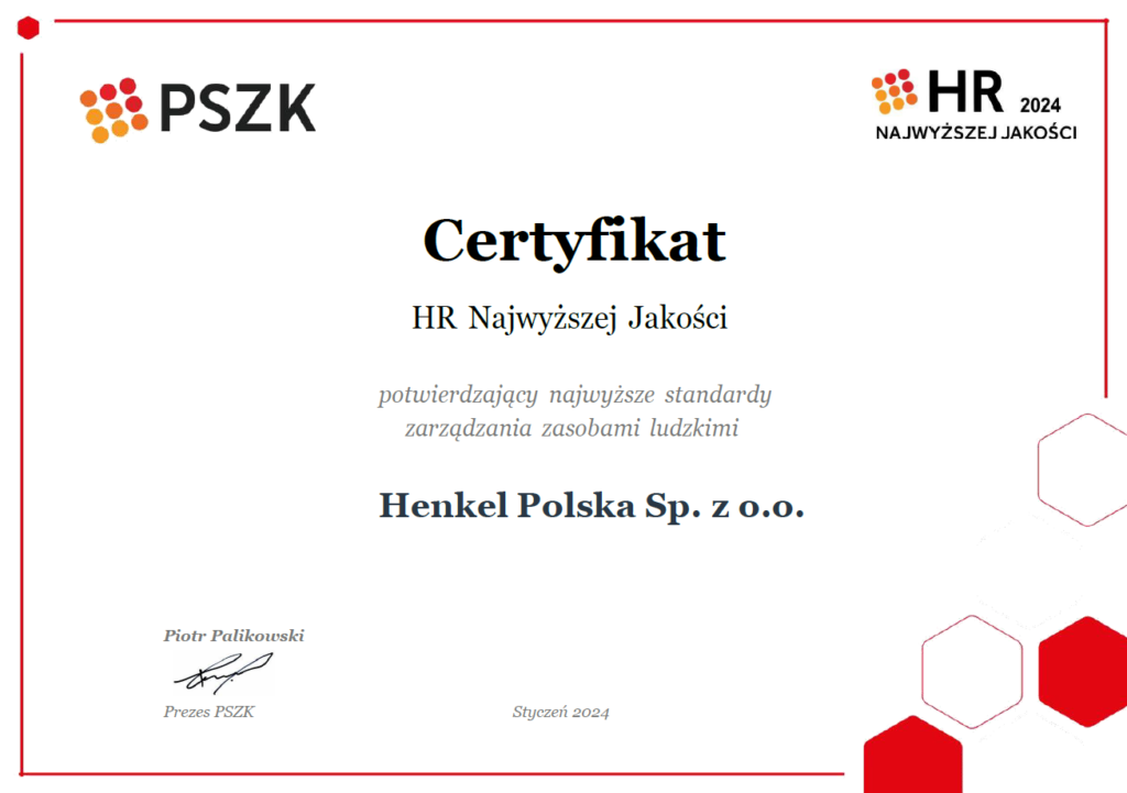 Henkel Polska kolejny rok z Certyfikatem HR Najwyższej Jakości