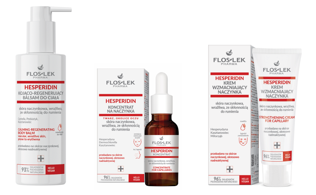 Krem wzmacniający naczynka (cena 34,99 zł / pojemność 50 ml) jest idealny do codziennej, dzienno-nocnej pielęgnacji cery z rozszerzonymi i pękającymi naczynkami oraz napadowym rumieniem. Jest dobrze tolerowany przez cerę wrażliwą. 86% badanych potwierdza, że stosowanie kremu wzmacnia cerę, zmniejsza jej nadreaktywność i niweluje zaczerwienienie oraz przeciwdziała ich utrwalaniu. Kosmetyk nawilża, rozjaśnia i pozostawia skórę bardziej jędrną i elastyczną. Z kolei 90% badanych stwierdziło, że zmniejsza zaczerwienienie skóry. Krem zawiera glukozyd hesperydyny, suchy ekstrakt z kasztanowca oraz ekstrakt z miłorzębu. 96% składników zawartych w kosmetyku jest pochodzenia naturalnego.