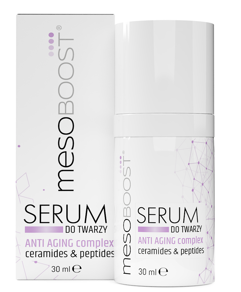 ANTI AGING complex ceramides & peptides od mesoBoost® to kombinacja składników aktywnych o działaniu anti-age. Ceramidy wzmacniają barierę ochronną skóry, chronią przed odwodnieniem i przesuszeniem, a także wykazują działanie przeciwzmarszczkowe i ujędrniające. Peptydy z kolei promują aktywację procesu regeneracji i korzystnie wpływają na odmłodzenie skóry.