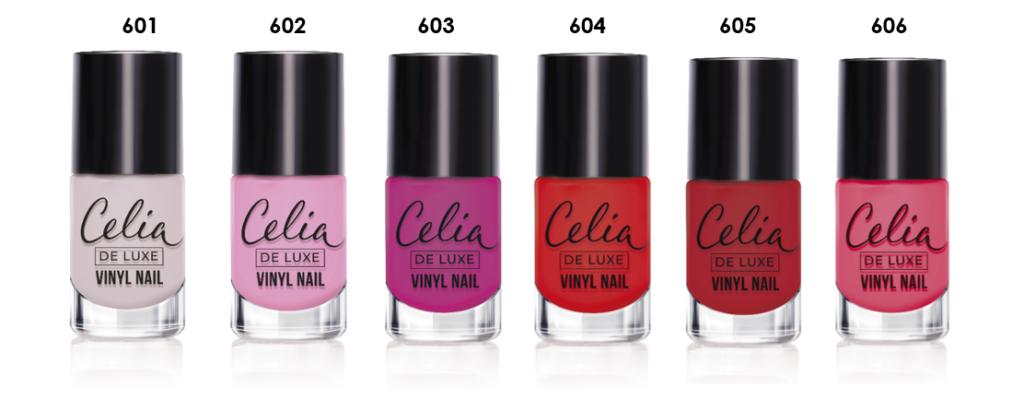 LAKIERY WINYLOWE TO DOSKONAŁY WYBÓR DO DOMOWEJ STYLIZACJI PAZNOKCI. SĄ DUŻO TRWALSZE NIŻ TRADYCYJNE EMALIE, NIE WYMAGAJĄ UŻYCIA BAZY ANI UTRWALENIA W LAMPIE, A ICH KOLORY DŁUGO ZACHOWUJĄ INTENSYWNOŚĆ. CELIA DE LUXE VINYL NAIL TO AŻ SZEŚĆ NOWYCH KOLORÓW, KTÓRE POZWOLĄ STWORZYĆ MANICURE I PEDICURE IDEALNY.