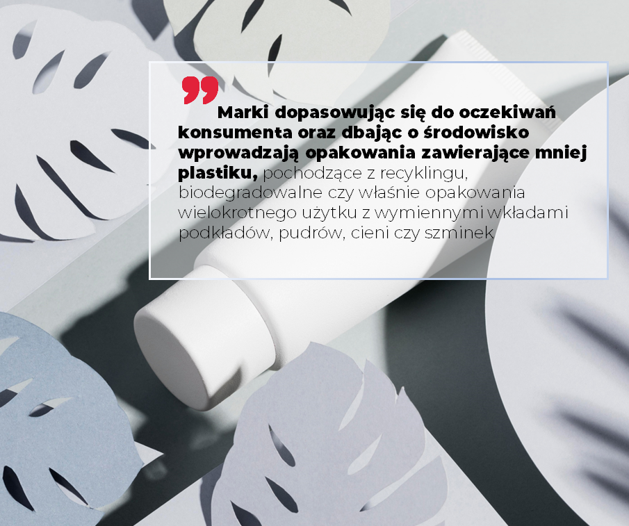 Producent na polskim rynku zauważył, że warto mieć w swojej ofercie przynajmniej jedną serię produktów eko, czyli ekologicznych rozwiązań w zakresie opakowań. Deklaracja poświadczająca możliwość recyklingu danego materiału staje się niewystarczająca. Marki dopasowując się do oczekiwań konsumenta oraz dbając o środowisko wprowadzają opakowania zawierające mniej plastiku, pochodzące z recyklingu, biodegradowalne czy właśnie opakowania wielokrotnego użytku z wymiennymi wkładami podkładów, pudrów, cieni czy szminek.