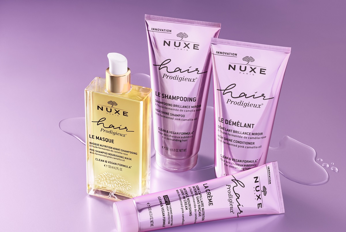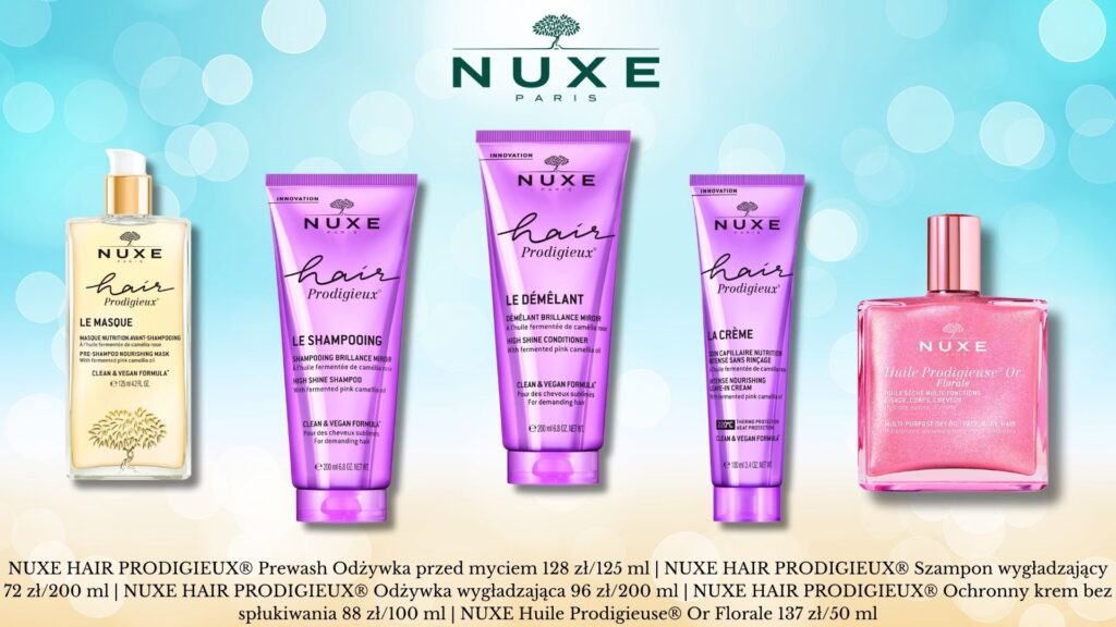 W nowej linii NUXE HAIR PRODIGIEUX® intensywna naprawa struktury włosa wydobywa ich niesamowitą miękkość oraz zniewalający blask, który widać gołym okiem. Spektakularne efekty zapewnia innowacyjna formuła oparta na sfermentowanym olejku z różowej kamelii. Wzmacnia kondycję włosów, dogłębnie regeneruje i przywraca sprężystość. HAIR PRODIGIEUX® to linia o zniewalającym zapachu, który Twoje włosy będą roztaczać jeszcze długo po zakończeniu pielęgnacyjnego rytuału. Ze względu na lekkie konsystencje produkty nie obciążają włosów, dzięki czemu będą idealnymi sprzymierzeńcami na lato! Podstawą jest esencja ekspertyzy w dziedzinie olejków botanicznych – NUXE HAIR PRODIGIEUX® Prewash Odżywka przed myciem 128 zł/125 ml. To maska o innowacyjnej formule stworzonej do stosowania na suche włosy, jeszcze przed myciem. Naturalnie drugim krokiem jest NUXE HAIR PRODIGIEUX® Szampon wygładzający 72 zł/200 ml, opracowany, aby przygotować włosy do wydobycia ich piękna i blasku. Łączy skuteczne oczyszczanie z odpowiednią dla włókien włosów delikatną formułą. Aby otulić włosy odżywczą miękkością i nadać włosom zdolność do wychwytywania światła, sięgnij po NUXE HAIR PRODIGIEUX® Odżywka wygładzająca 96 zł/200 ml i zapewnij włosom promienny połysk, który można niemal poczuć. Do zabezpieczania przed słońcem lub stylizacji użyj NUXE HAIR PRODIGIEUX® Ochronny krem bez spłukiwania 88 zł/100 ml. Wystarczy niewielka kropla tego produktu bez spłukiwania rozprowadzona na długości i końcach włosów, aby je odżywić i nadać im olśniewający blask.