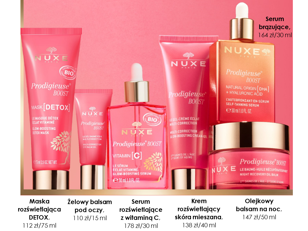 - Zmieszaj z kremem – dodaj wybraną ilość kropli do swojego ulubionego kremu NUXE i nałóż na twarz jak zwykle.