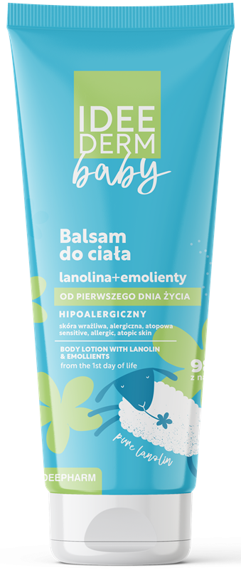 IDEE DERM BABY Balsam do ciała działa kojąco, odżywczo i nawilżająco. Zawiera m. in. lanolinę, olej canola, olej słonecznikowy, masło shea, olej kokosowy, glicerynę roślinną, inulinę, alantoinę i ekstrakt z bawełny. Balsam łatwo się wchłania, wspiera naturalne funkcje ochronne skóry i doskonale sprawdzi się jako kosmetyk do masażu. Co równie ważne, dłonie mamy lub taty powinny być czyste i ciepłe, należy także zdjąć biżuterię czy zegarek. Maluszka masujemy tylko wtedy, kiedy jest na to gotowy i wyraża zainteresowanie taką interakcją. Odwracanie się, płacz czy marudzenie to znak, że w tym momencie dziecko nie ma ochoty na taką formę bliskości i należy to uszanować.