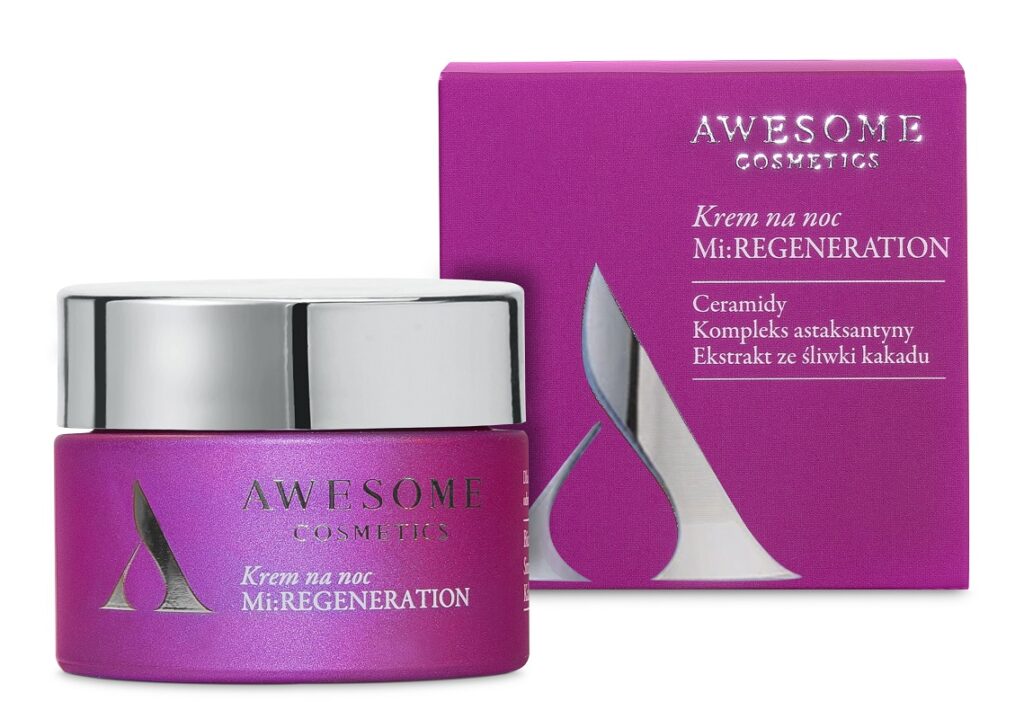 Gdy Ty śpisz, on regeneruje, odżywia, nawilża, wygładza i dba o równowagę mikrobiomu. Nowość Awesome Cosmetics w składzie posiada m.in. kompleks astaksantyny, ceramidy, ekstrakt ze śliwki kakadu. Ten krem, to idealne rozwiązanie dla skóry problematycznej, po zabiegach, wymagającej głębokiej regeneracji. Zapewni skórze ukojenie i odbudowę, zwłaszcza dzięki obecności ceramidów, które silnie odżywiają i regenerują oraz stanowią identyczną mieszankę składników, jaką naturalnie posiada bariera skórna. Nasz kosmetyk jest wydajny, a dzięki odpowiedniej konsystencji świetnie się rozprowadza i szybko wchłania, żebyś Ty miała więcej czasu na spokojny sen!