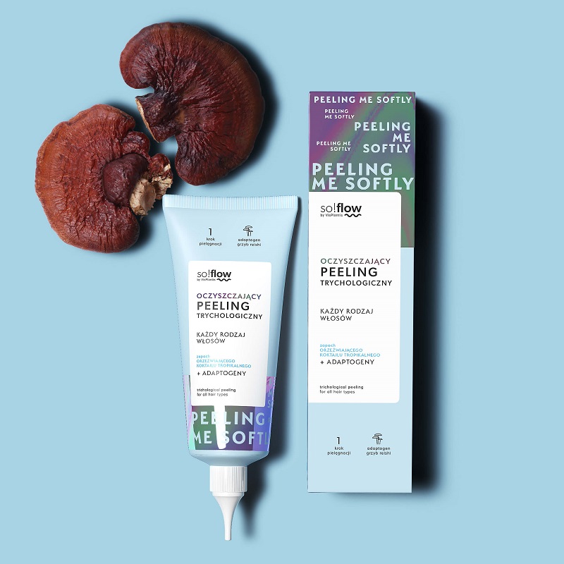 Kolejny adaptogen, grzyb Reishi, pomaga utrzymać równowagę skóry głowy, wzmacnia jej barierę ochronną i wspomaga zdrowy wzrost włosów. Działa kojąco, łagodzi podrażnienia i nawilża, sprzyjając przy tym lepszej kondycji zarówno skóry głowy, jak i włosów. Grzyb Reishi wspiera także układ odpornościowy, działa przeciwzapalnie oraz redukuje stres i zmęczenie. Można go znaleźć w linii uzupełniającej so!flow do każdego rodzaju włosów.