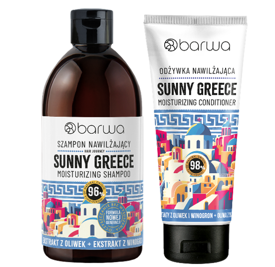 Barwa zabiera nas do Grecji, by odkryć sekret głębokiego nawilżenia włosów. Sunny Greece to skarby z krainy oliwek i winorośli, takie jak oliwa z oliwek i ekstrakt z winogron. Greckie składniki odżywiają włosy, sprawiając, że stają się one miękkie, elastyczne i pełne życia.