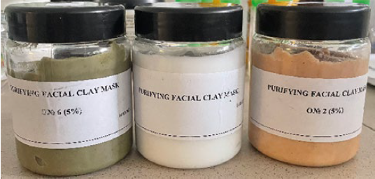Rys. 2 Trzy maseczki do twarzy z glinki w kuwetach PA 2 mm.