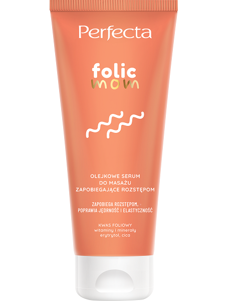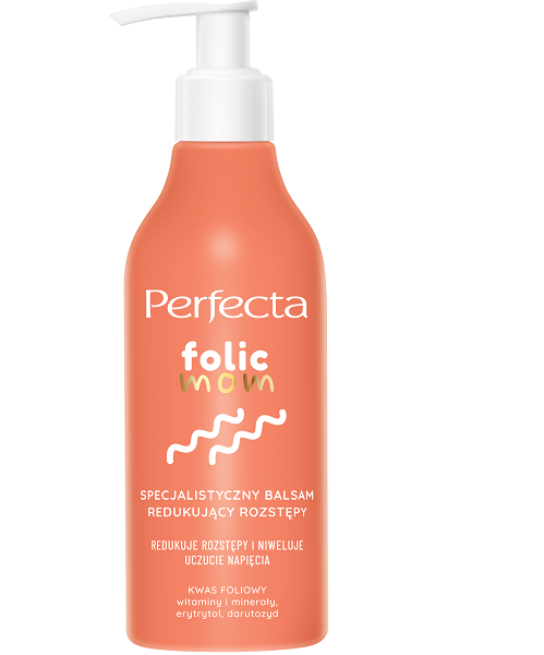 W ciąży nasz świat staje się piękniejszy z dnia na dzień, a ciało ulega zmianom. Towarzyszą nam buzujące hormony, które wywierają wpływ na kondycję skóry. Nie tylko staje się ona bardziej wrażliwa, ale też jest narażona na powstawanie rozstępów. Dlatego tak ważne jest dbanie o jej elastyczność. W każdym produkcie z linii PERFECTA FOLIC MOM zastosowano sprawdzone składniki aktywne. W składach znajdziemy niezwykle ważny dla kobiet w ciąży kwas foliowy, który stymuluje syntezę kolagenu, wzmacnia włókna podporowe i regeneruje. Erytrytol poprawia nawilżenie, zapewnia gładkość oraz dba o mikrobiom skóry, minerały odpowiadają za wzmocnienie jej kondycji, a witaminy za wspomaganie procesów naprawczych. Wszystkie produkty zostały przebadane pod nadzorem dermatologa i ginekologa, nie zakłóca badań USG.