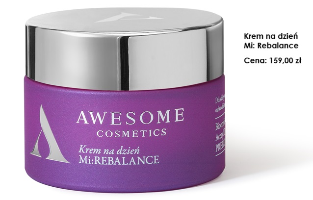 Propozycje Awesome Cosmetics z linii Mikrobiom to silnie odżywcze i nawilżające produkty, które bardzo dobrze sprawdzą się w tym trudnym dla skóry zimowym okresie. Wśród kluczowych kosmetyków warto wyróżnić krem na dzień Mi: REBALANCE. To idealny krem do codziennej pielęgnacji, zapewniający głębokie nawilżenie i ochronę przed czynnikami zewnętrznymi. Dzięki lekkiej formule szybko się wchłania, pozostawiając skórę miękką i wygładzoną. Wyróżnia się działaniem przeciwzmarszczkowym i wspiera mikrobiom skóry dzięki składnikom takim jak PREBIOME™ i Bioecolia®, które regulują poziom nawilżenia i pomagają w utrzymaniu zdrowej flory bakteryjnej skóry. W składzie obecny jest też Hypskin czyli naturalna substancja bioaktywna z alg morskich, która działa przeciwzmarszczkowo oraz Acetyl Zingerone – innowacyjny składnik, przeciwutleniacz, który chroni przed fotostarzeniem i niweluje oznaki starzenia. Do tego m.in. masło cupuacu pozyskiwane z owoców kakaowca, które bardzo dobrze wygładza skórę i wyrównuje jej koloryt, a do tego jest bogate w fosfor oraz witaminy A i C oraz olej z rokitnika, który chroni warstwę lipidową i pomaga przeciwdziałać stanom zapalnym. Tripelargonin oraz ekstrakt ze śliwki kakadu mają działanie nawilżające oraz zmiękczające i przywracają równowagę mikrobiologiczną. Krem doskonale nadaje się pod makijaż i przynosi ukojenie cerze suchej i problematycznej. Jego niezwykłą skuteczność potwierdzają aparaturowe pomiary kondycji skóry – po 28 dniach stosowania skóra testujących była lepiej nawilżona (o niemal 11%), utrata wody zmniejszyła się o 23,5%, a głębokość zmarszczek o prawie 10%.