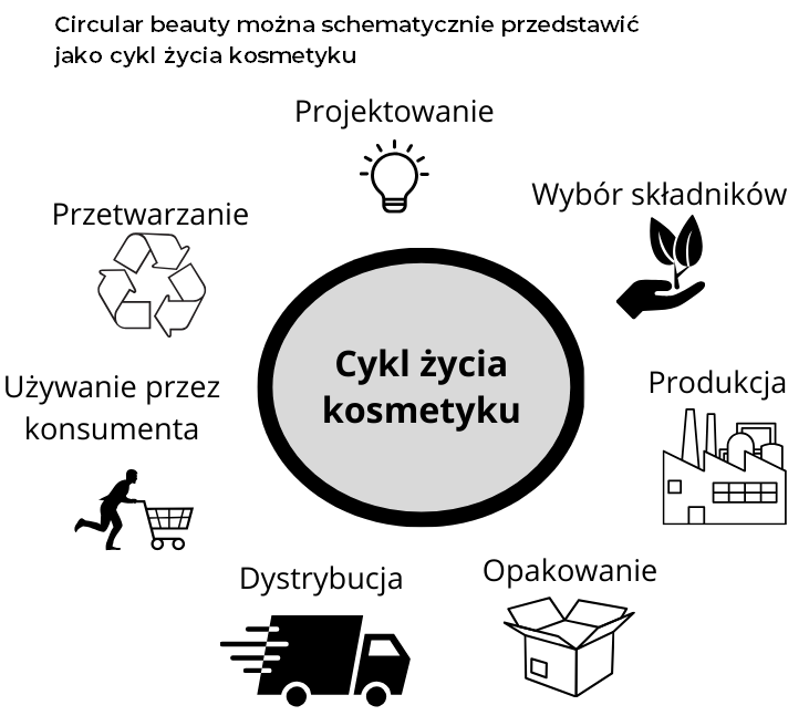 Circular beauty to trend, który gromadzi pod jednym hasłem wszystkie aspekty dotyczące produkcji oraz funkcjonowania kosmetyków w obiegu zamkniętym, począwszy od projektowania przez produkcję, używanie aż do utylizacji, w sposób zrównoważony i przyjazny dla środowiska. Gospodarka o obiegu zamkniętym ma na celu jak najdłuższe utrzymanie wartości produktów, materiałów i zasobów poprzez ich powrót do cyklu produkcyjnego po zakończeniu ich użytkowania, przy jednoczesnej minimalizacji wytwarzania odpadów [8].