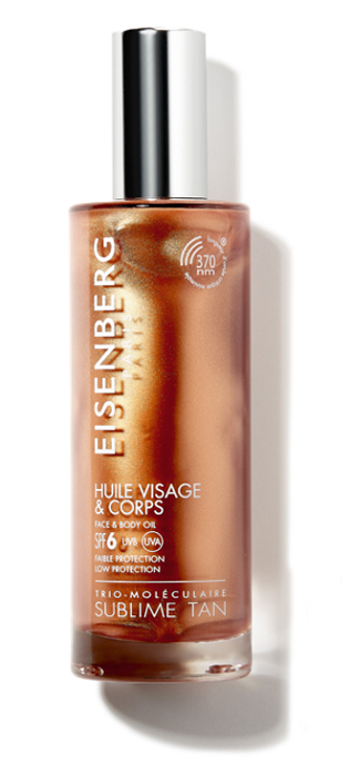 Zakorzeniona w zasadach innowacji i nauki, EISENBERG Paris po raz kolejny redefiniuje standardy piękna, wprowadzając najwyższej jakości rozwiązania łączące najnowocześniejszą technologię z ukierunkowanymi składnikami. Efekt? Piękna i zdrowa skóra! Zmysłowe, niefotouczulające zapachy przypominające kultowy Olejek do twarzy i ciała SPF6 oraz wysoce sensoryczne tekstury produktów pozwalają doświadczyć pielęgnacji słonecznej, wznosząc je na nowy poziom rozpieszczenia. Linia Sublime Tan zawiera starannie opracowane filtry UVA/UVB nowej generacji, aby chronić skórę przed negatywnymi skutkami słońca.