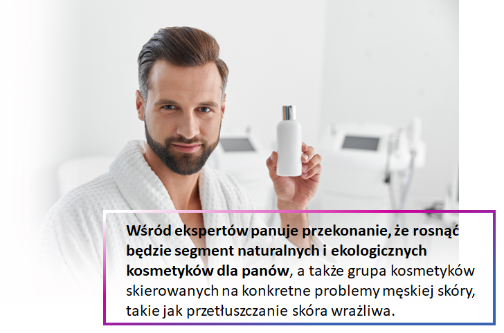Na podstawie najnowszych badań rynkowych można stwierdzić, że mężczyźni coraz bardziej świadomie wybierają kosmetyki dla siebie. Nie tylko zwracają uwagę na przeznaczenie produktu, ale także analizują jego skład. Coraz większa grupa mężczyzn wybiera produkty naturalne lub z dużą zawartością składników pochodzenia naturalnego, zwracają oni także uwagę na opakowania kosmetyków, które powinny być przyjazne dla środowiska. Ponadto panowie zaczęli świadomie poszukiwać kosmetyków działających skutecznie i kierują się w tych poszukiwaniach właśnie składem produktów – wiedzą coraz więcej o składnikach aktywnych mających realny wpływ na nawilżanie skóry, zmniejszanie wydzielania sebum czy działające przeciwzmarszczkowo.