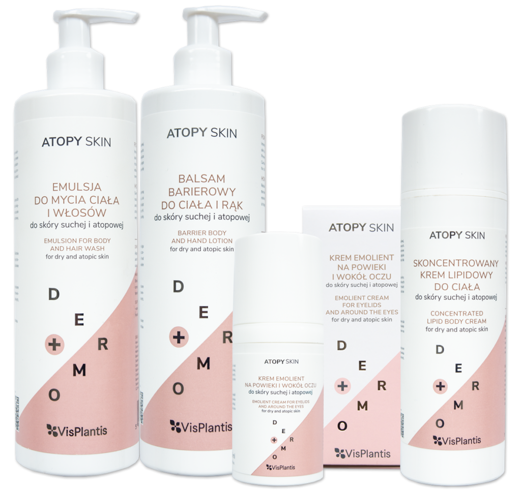 W skład linii Atopy Skin wchodzą: emulsja do mycia ciała i włosów, balsam barierowy do ciała i rąk, skoncentrowany krem do ciała, a także krem emolient przeznaczony do delikatnej skóry powiek i wokół oczu. Kosmetyki są odpowiednie również dla dzieci powyżej 3 roku życia.