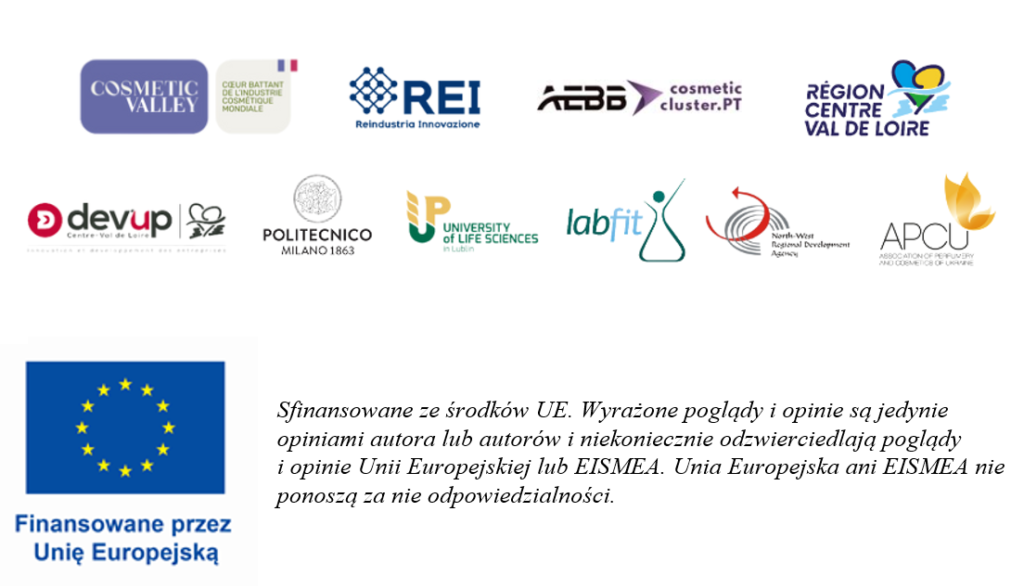 *projekt ACTT4Cosmetics –  Improve Interconnected innovation ecosystems supporting Actions for Citizen awareness and Twin Transition in the entire cosmetic value chain, ma na celu wzmocnienie współpracy między europejskimi ekosystemami kosmetycznymi i zachęcenie do wdrażania wspólnych innowacji, aby sprostać głównym wyzwaniom ekologicznym, cyfrowym i społecznym. Partnerzy ACTT4Cosmetics w ciągu najbliższych pięciu lat, dysponując budżetem 3,6 mln euro, współfinansowanym przez Unię Europejską w ramach programu „Horyzont Europa”, zaproponują program wspólnych działań skupionych wokół europejskich grup roboczych w celu opracowania czternastu innowacyjnych rozwiązań odpowiadających na główne wyzwania w obszarze transformacji ekologicznej i cyfrowej oraz podnoszenia świadomości konsumentów i obywateli.