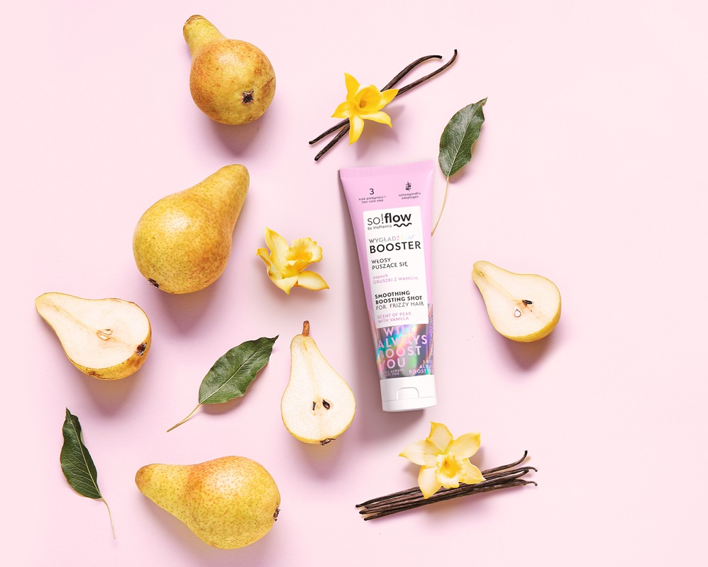 so!flow by Vis Plantis to innowacyjna linia kosmetyków o owocowych zapachach. Powstała w odpowiedzi na potrzeby kobiet, które chcą cieszyć się pięknym i zdrowym wyglądem oraz troszczyć się o swój psychiczny dobrostan. W składzie produktów obok składników aktywnych, znalazły się adaptogeny – naturalne substancje roślinne, słynące z dobroczynnego wpływu na skórę i włosy oraz przywracające naturalną równowagę organizmu. Oferta so!flow obejmuje kosmetyki do włosów, w tym linie dopasowane do ich porowatości oraz produkty do ciała.