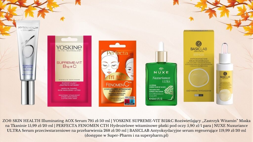 Witamina C – wszystko już o niej wiesz? Ale nie szkodzi sobie przypomnieć, bo teraz, kiedy przechodzimy w inny sezon przyda się nam wyjątkowo. I od wewnątrz i od zewnątrz. Przede wszystkim ta witamina jest niezbędna do tworzenia kolagenu w kościach, skórze, naczyniach krwionośnych i więzadłach. Pomaga również utrzymać funkcje odpornościowe, poprawia gojenie się ran i pomaga w tworzeniu czerwonych krwinek. Witamina C przyjmowana codziennie profilaktycznie skraca czas trwania przeziębienia a osób, które regularnie trenują w ekstremalnych warunkach temperaturowych zmniejsza też mocno ryzyko infekcji dróg oddechowych. A jak działa podana w kosmetykach? To wszechstronny składnik, który, odpowiednio stosowany, może przynieść znaczące korzyści dla różnych typów skóry, szczególnie tych z tendencją do przebarwień i utraty jędrności. Jest silnym przeciwutleniaczem, co oznacza, że neutralizuje wolne rodniki powstające na skutek działania promieniowania UV i zanieczyszczeń środowiskowych. Wolne rodniki uszkadzają komórki skóry, przyspieszając proces starzenia i prowadząc do powstawania zmarszczek i przebarwień. Pomaga redukować przebarwienia, plamy posłoneczne i wyrównuje koloryt skóry, nadając jej promienny wygląd. Witamina C wzmacnia barierę ochronną skóry, co sprawia, że jest ona bardziej odporna na działanie szkodliwych czynników zewnętrznych i utratę wilgoci. Najbardziej stabilną i skuteczną formą jest kwas askorbinowy (L-ascorbic acid). Inne formy to np. tetraizopalmitynian askorbylu (tetrahexyldecyl ascorbate) czy fosforan askorbylu magnezu (magnesium ascorbyl phosphate), które są bardziej stabilne i mniej drażniące, ale mogą działać słabiej. Oto kilka produktów, które warto wprowadzić do jesiennej pielęgnacji!