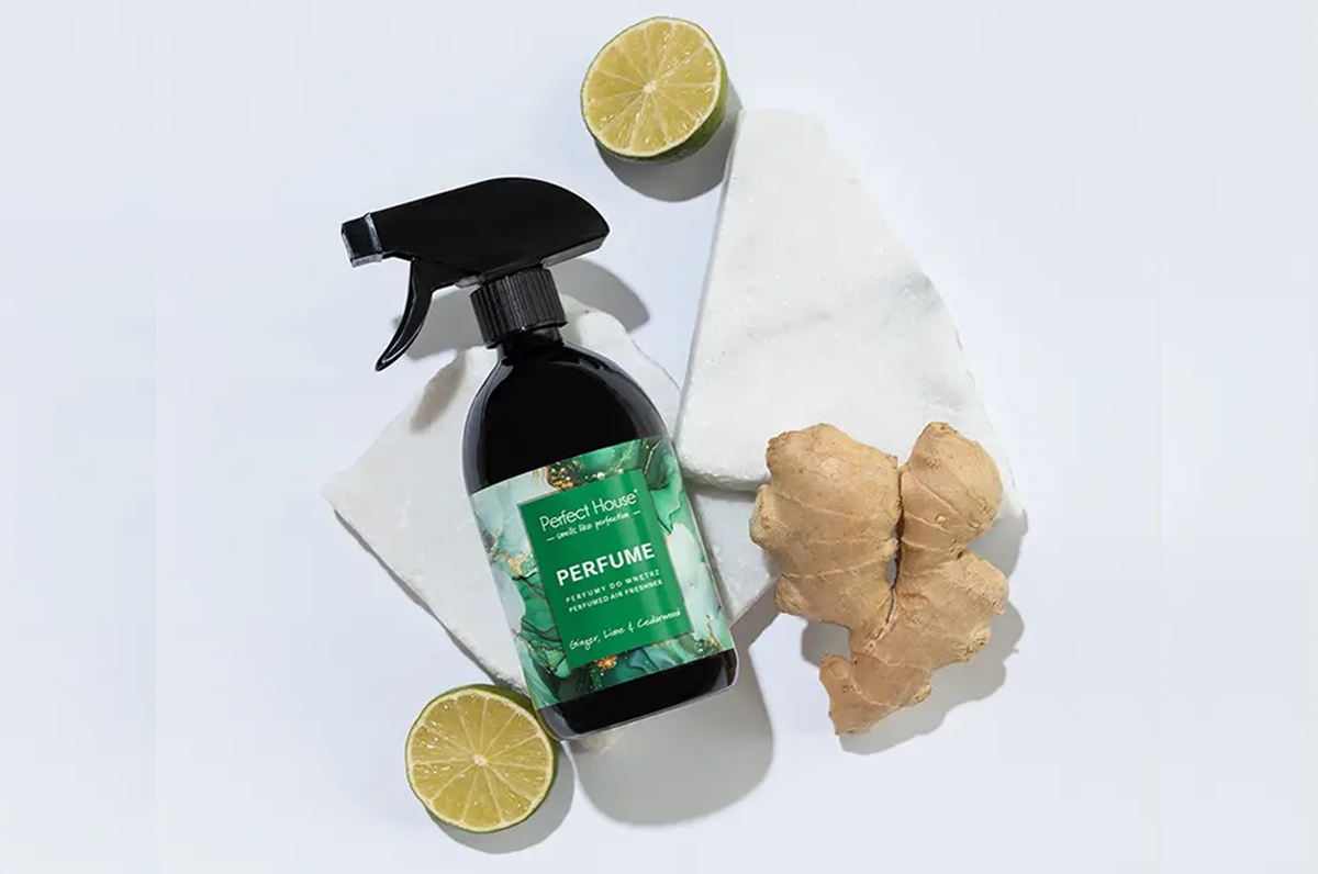 PERFECT HOUSE Perfume Ginger, Lime & Cedarwood to perfumy do wnętrz, które zapraszają do świata energetycznych poranków – dzięki obecności soczystej limonki budzą do życia i wprowadzają świeżość. Delikatny imbir tworzy przytulną atmosferę, jak spotkanie przy porannej kawie w ogrodzie. Drzewo cedrowe dodaje głębi i elegancji, przywołując obrazy stylowych wnętrz. Z tym zapachem każda chwila staje się niepowtarzalna, a codzienność zyskuje nowy wymiar. Perfumy mają uniwersalne zastosowanie: odświeżają wnętrza – także te w Twoim pokoju, biurze i aucie oraz tkaniny, pościel, zasłony, garderobę i ubrania. Zapach jest długotrwały i utrzymuje się przez wiele godzin, a jego stylowe opakowanie będzie elementem dekoracyjnym we wnętrzu.