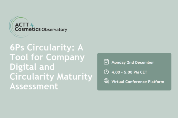 Cyrkularność 6Ps jako narzędzie do oceny dojrzałości firmy w zakresie cyfryzacji i cyrkularności – zapraszamy na kolejny bezpłatny webinar w ramach projektu ACTT4Cosmetics!