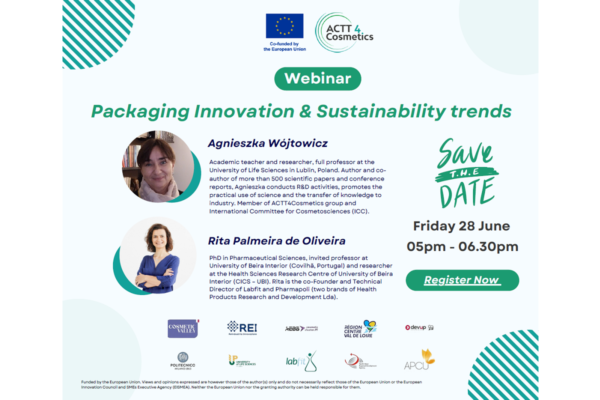 „Kierunki innowacji w opakowaniach kosmetycznych w świetle zrównoważonego rozwoju” – zapraszamy na kolejny bezpłatny webinar w ramach projektu ACTT4Cosmetics!